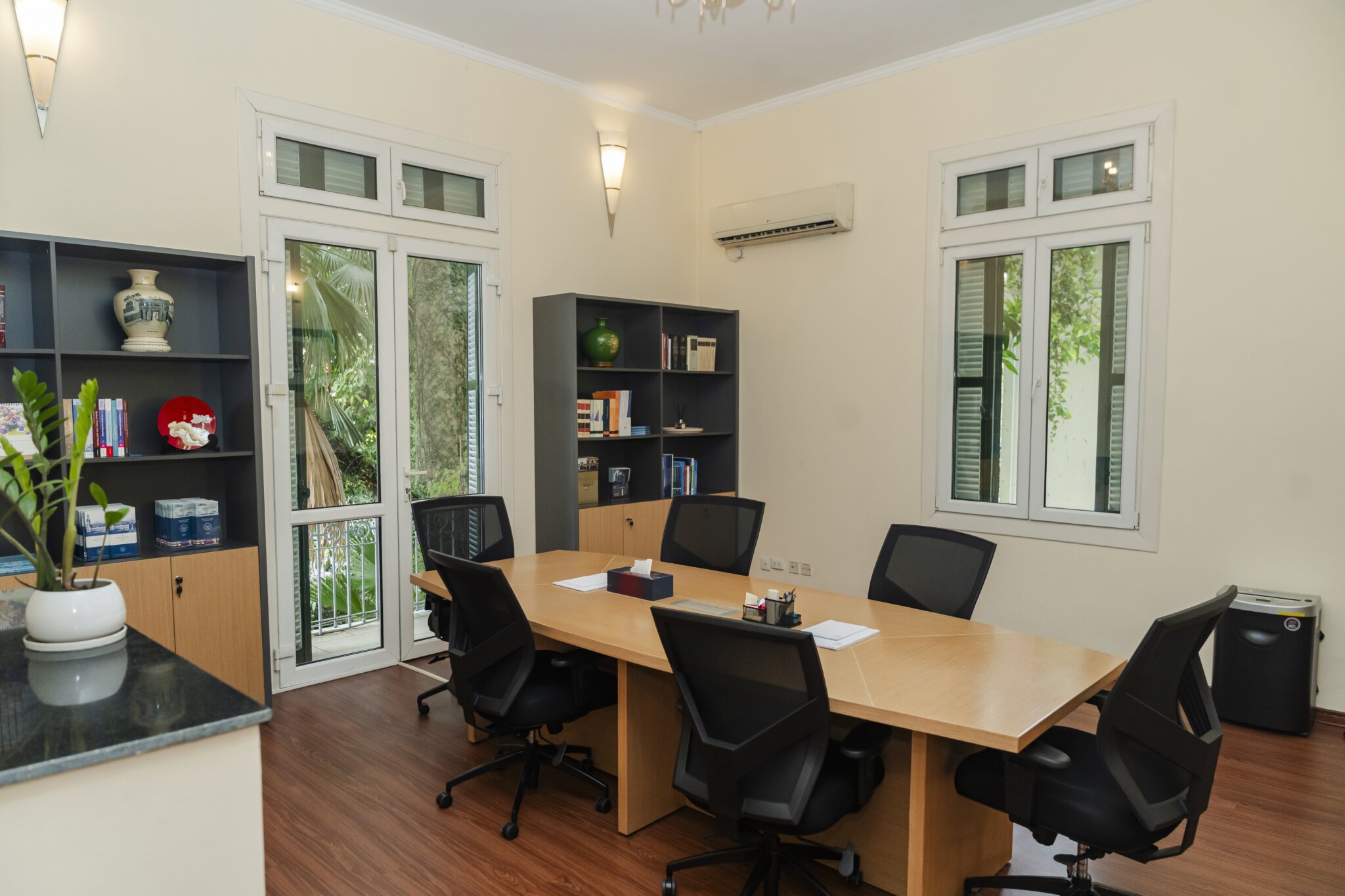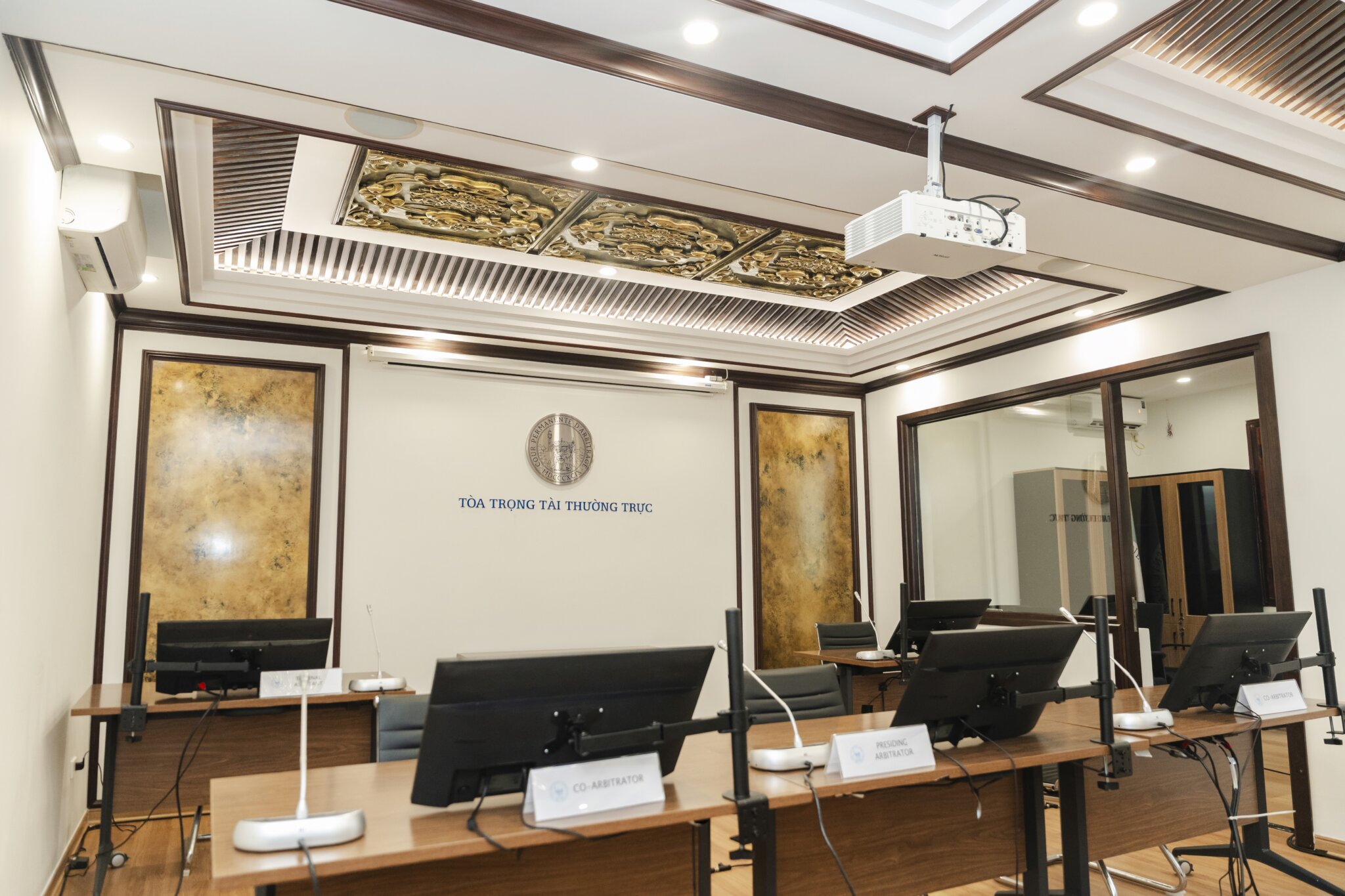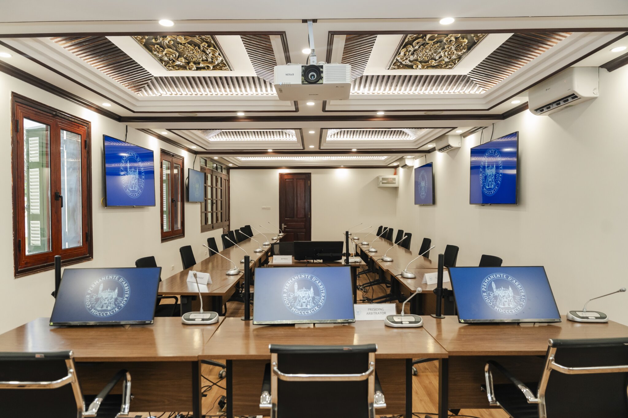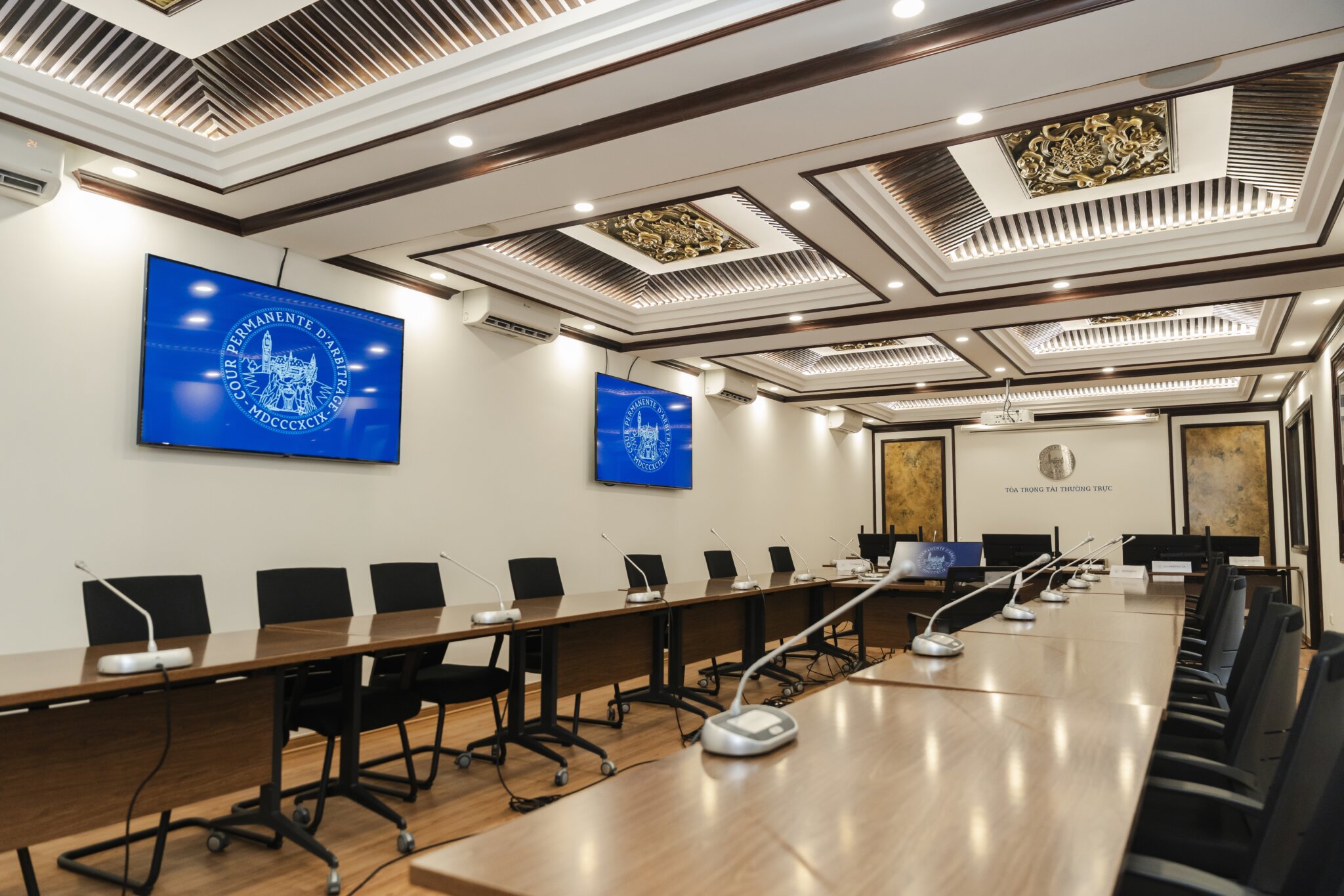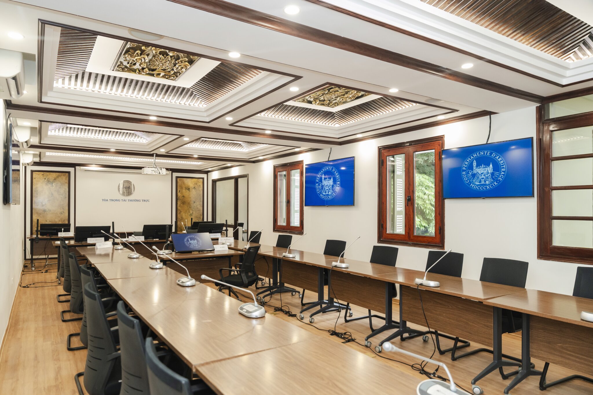 The House of Peace can accommodate hearings with up to eight participants per party. The premises comprise a multifunctional hearing room, three breakout rooms, and a witness sequestration room. The hearing room is equipped with standard audiovisual facilities and a built-in interpretation booth, enabling the efficient conduct of hearings, including those in hybrid format and/or requiring interpretation. Located in one of the historic villas of Tran Phu Street, the House of Peace is close to various embassies and major state agencies of the Government of Viet Nam, as well as to hotels, restaurants, and prominent cultural and scenic landmarks.